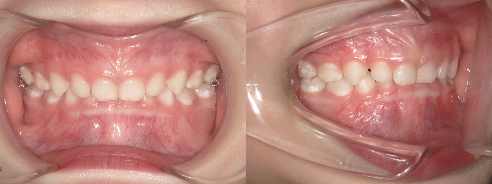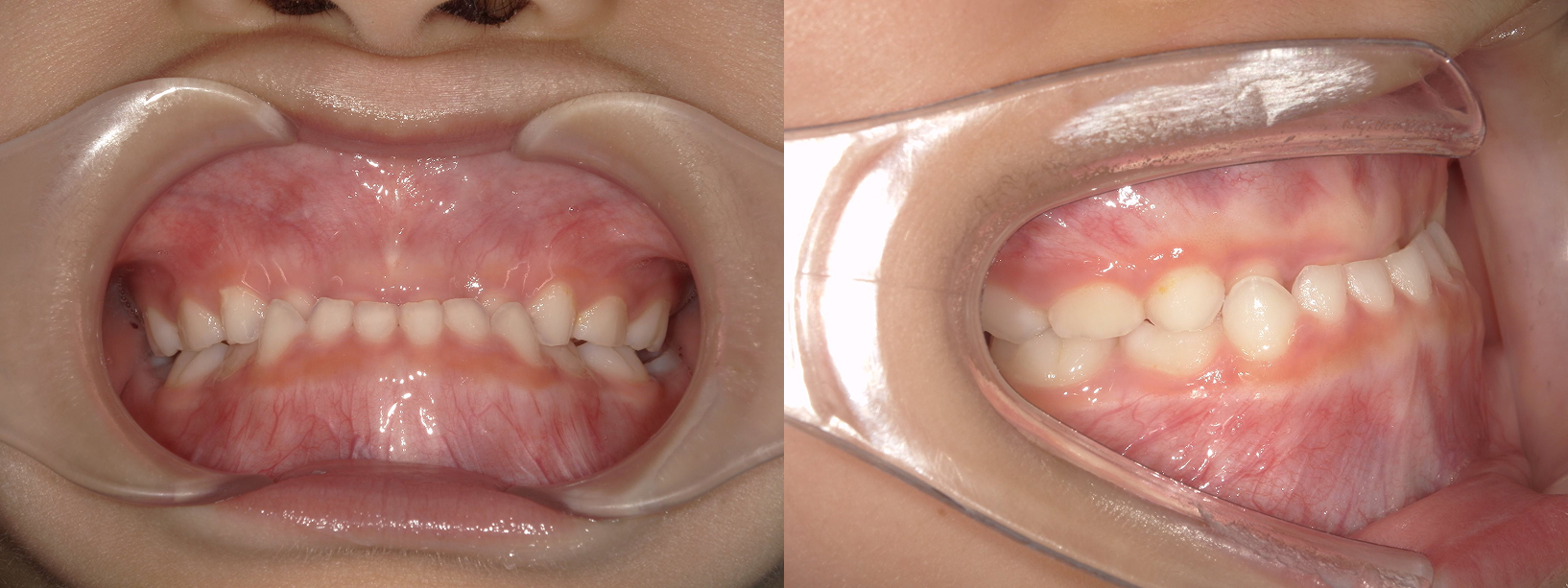6歳6ヶ月から半年間で反対咬合改善 その後永久歯交換まで治療継続 |